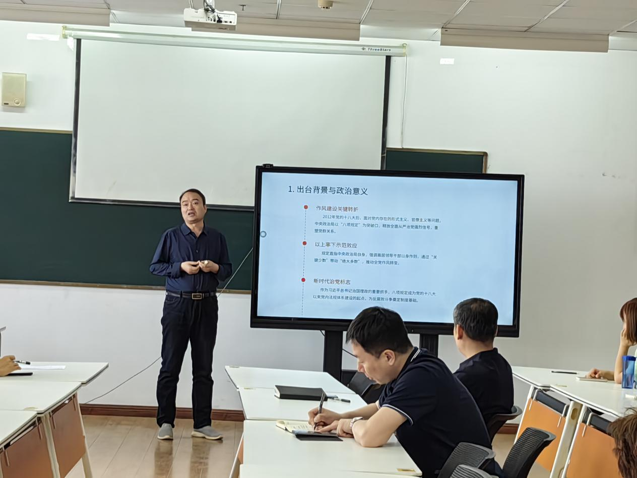 4月21日,开心彩党总支召开深入贯彻中央八项规定精神学习教育读书班,认真学习习近平总书记关于深入贯彻中央八项规定精神学习教育的重要讲话和重要指示精神。会议由党总支书记卢文澈主持,并带领大家进行集体学习,全体党员教师参加会议。